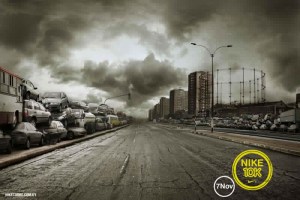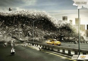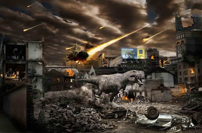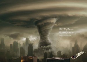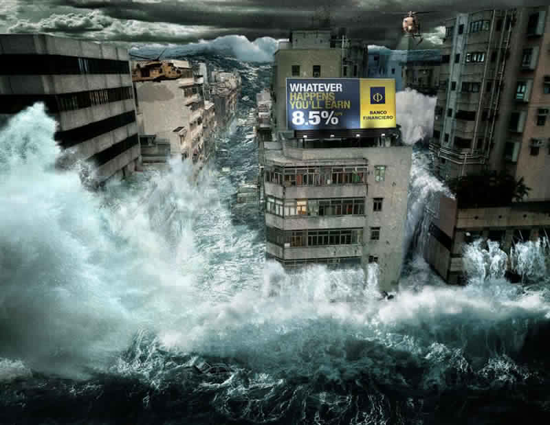 Ahora bien, el mercado está cambiando. La competencia cada vez es más dura y hay que recurrir a imágenes más impactantes para despertar las emociones de los potenciales clientes y, de esta manera, atraer su atención. Tarde o temprano, la publicidad tenía que recordar el consejo de Cecil B de Mille, el director de las grandes epopeyas históricas de la época dorada de Holywood: “Las películas deben comenzar con un terremoto e ir creciendo en acción”. Además, ya se sabe que las épocas de crisis son un buen momento para las historias de Terror. El número de series y películas catastróficas es legión desde hace varías temporadas. Además, ¿No se espera una hecatombe épica dentro de casi 13 meses, una hecatombe, por cierto, 2.0, pues tiene hasta web: Fin del Mundo 2012? En realidad, el Fin del Mundo ya se ha predicho cuatro veces en lo que va de año, y, a pesar de su fracaso, el agorero de estas profecias, Harold Camping, ha ganado más de 80 millones de dólares. Uno de los mensajes más retuiteados hace unos días era la propuesta de declarar el Día Internacional del Fin del Mundo.