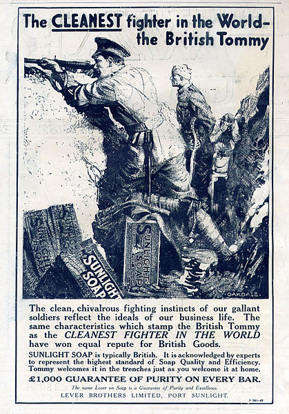 En el Natural History Museum de Londres se exponen las primeras pastillas de jabón Sunlight, conservadas gracias al frío del Ártico. Exploradores de aquella época, como el legendario capitán Scott, las habían llevado consigo para lavarse. Hay que tener en cuenta que, desde finales del siglo XIX, la higiene se había convertido en un tema prioritario para los reformistas sociales. William Lever supo dar respuesta a esta necesidad, extendiendo el privilegio de la limpieza a todas las clases sociales y, en especial, a las ingleses, que de este modo, se convertían en modelo de civilización.. En un anuncio de la Primera Guerra Mundial, el eslogan de Sunlight decía: «El solado MÁS LIMPIO del mundo: el británico Tommy». Otra importante clave para el éxito de una marca es que sepa proporcionar un mercado para una auténtica necesidad social…