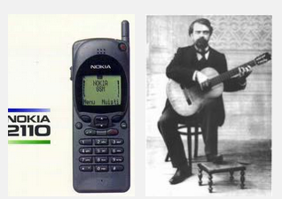 Me refiero al tono de llamada por defecto de los teléfonos Nokia, inspirada en el Gran Vals que el compositor español compuso en 1902. En concreto, los compases 13-16. Este tono se escuchó por primera vez en el Nokia 2110, lanzado en 1994, convirtiéndose en el primer tono musical identificable en un teléfono móvil. En la actualidad, la llamada “melodía Nokia” (Nokia tune) suena más de mil millones de veces al día. Una cifra paradójica porque nadie ha cobrado royalties por este récord. Los derechos de autor habían expirado cuando la marca finlandesa adaptó la melodía (más información sobre el origen del «Nokia Tune» y otras curiosidades de la politonía)