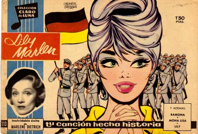 La letra la había escrito el poeta y soldado Hans Leip (1893-1983), en 1915, y la música el compositor Norbert Schultze (1911-2002), en 1937. Al principio, pasó totalmente desapercibida. Hacia 1941, fue ganando seguidores, hasta convertirse en la canción más popular de la II Guerra Mundial, virtud de diversas circunstancias fortuitas. En poco tiempo, se tradujo a casi 50 idiomas y se conocen, al menos, 195 versiones. La primera adaptación al español la realizaron soldados de la División Azul. En un tebeo de aquella época, se mostraba la siguiente portada…